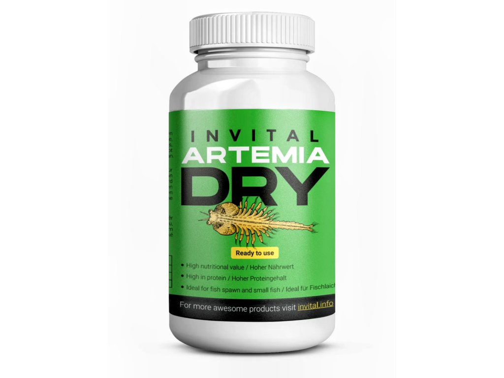 INVITAL Artemia Dry 50g je prémiová odskořápkovaná artemie určená k okamžitému krmení - není třeba líhnout! Tento typ artemie je vhodný pro potěr i menší dospělé ryby. Díky vysokým nutričním hodnotám a velkému obsahu betakarotenu se jedná o skvělé krmivo pro kompletní vývoj a vybarvení vašich ryb.