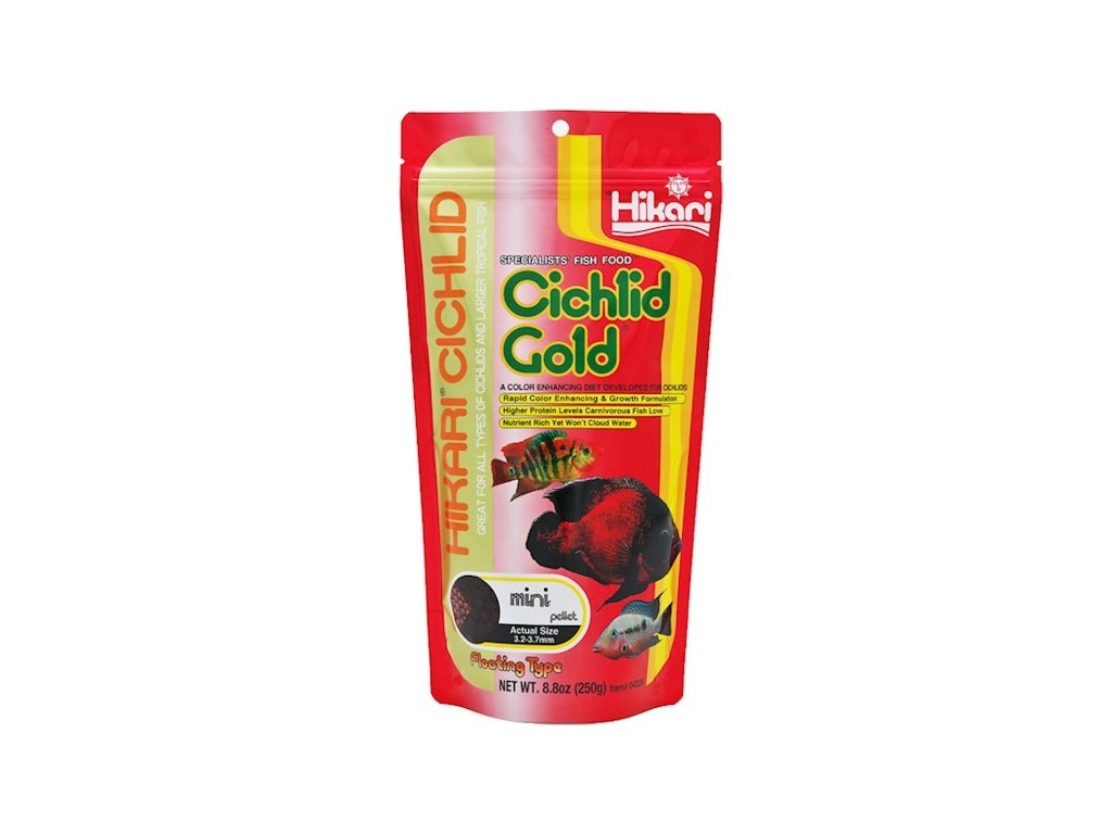 Hikari Cichlid Gold Mini 250g je prémiové plovoucí krmivo s vyváženým složením, které podporuje excelentní růst a výrazné přirozené vybarvení cichlid a větších tropických ryb. Je vyrobeno z mimořádně kvalitních surovin, které zajišťují vynikající stravitelnost a celkovou vitalitu vašich chovanců.